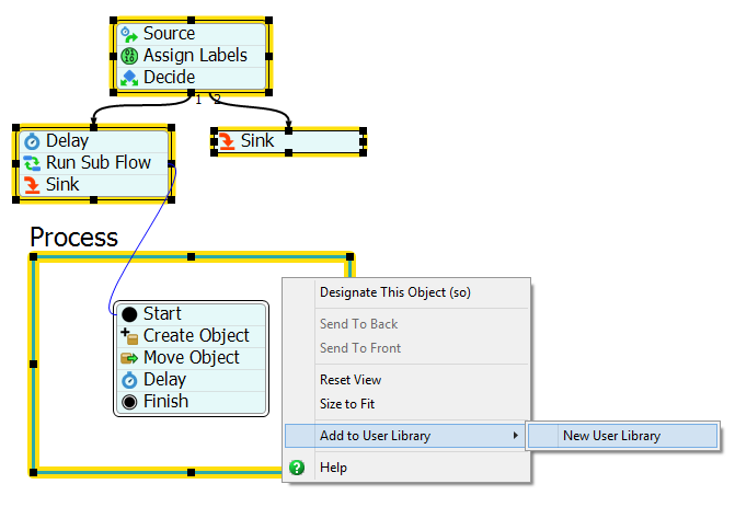 Consider using a custom object library if you have customized the properties of a particular object and you'd like to be able to easily add copies of this custom object directly from the Library. For example, if you've made several complex changes to the properties of a specific processor, you can add this processor to your custom object library. Then you can simply drag and drop the custom processor from the library into your model and the new processors will have identical properties.