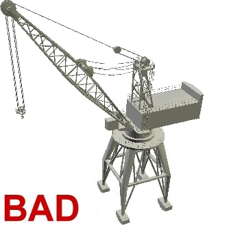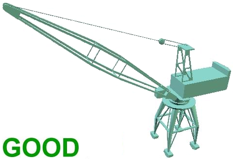Notice the hoist line and rope combines several polygons in order to make it look more like steel wire. The crane's chassis also has fencing on top which uses additional polygons. While this crane does look realistic, these details and extra polygons aren't necessary and will not look optimal in FlexSim.