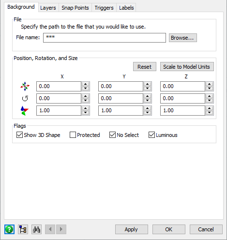Model Background to add a background to the model. - In the Background tab, click the Browse... button to navigate to the file.