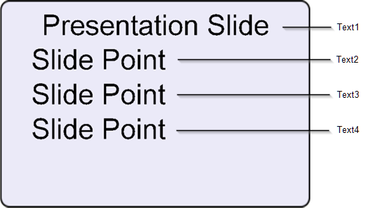 Slide objects are designed to look like a presentation slide. Slides consist of several text objects that are displayed on a single plane.