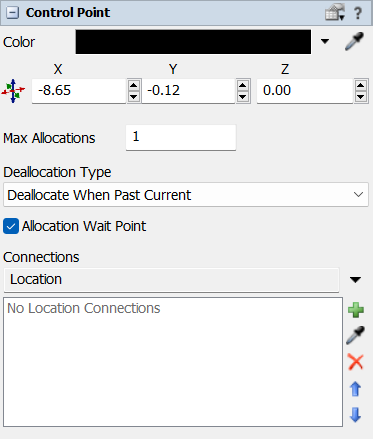 Control points are the basic building blocks of logic in an AGV network. They are both the "end points" of travel, as well as the "stepping stones" of AGV look-ahead allocation. Additionally, control points can be logically associated with each other, through control point connections. Control point connections are an incredibly powerful feature that makes it easier to drive the logic of an AGV model.