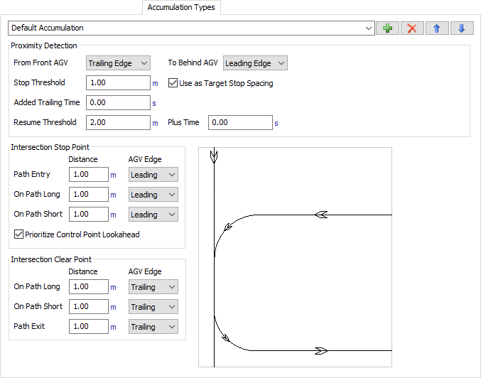 Control points act as "stepping stones" on the AGVs path. When an AGV arrives at a control point, say CP1, it will attempt to allocate ahead to the next control point, say CP2. If it cannot allocate CP2, then it will decelerate to stop at CP1, and wait until it can allocate CP2 before continuing on. This is independent of how far separated CP2 is from CP1 on the network. In other words, when default settings are used, control points are the only points where AGVs can stop on the network. They will not continue from one control point to the next until they have allocated that next control point, no matter how far ahead it is. As such, they may look very far ahead in their travel path to allocate the next control point.