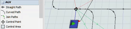 In order for an AGV to travel on an AGV path network, it needs to be connected as a Traveler AGV to a control point on the AGV network. Choose a control point that is on the main AGV network. It should be close to the area where you want the AGVs to enter.