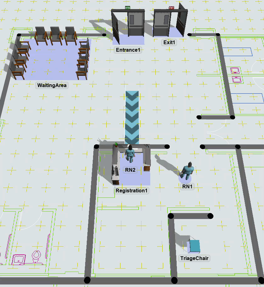 After an A* Navigator has been added to your model, you will need to connect all the task executers that will use the navigation system. You also need to add any fixed resources to the model that should be treated as barriers that task executers can't walk through.
