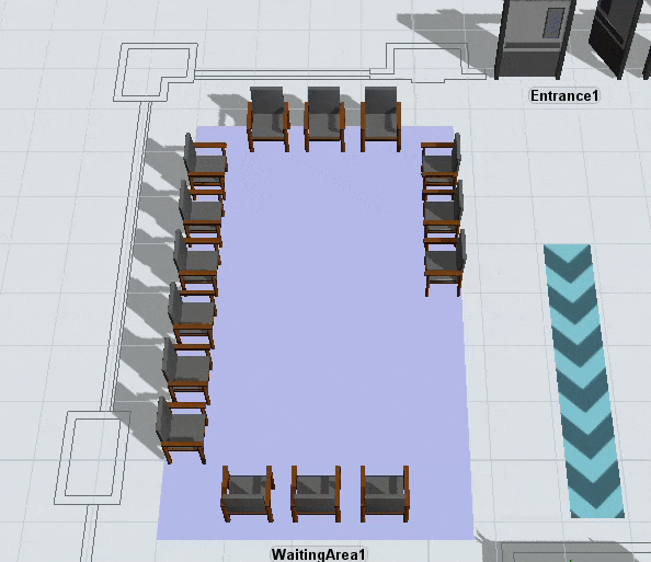 Once you've added the control area to your model, adjust its location, size, and rotation to surround the area you want restricted, and set its Max Allocations property to the desired maximum number of travelers you want allowed in that area. The A* network will then restrict the number of travelers in that area.