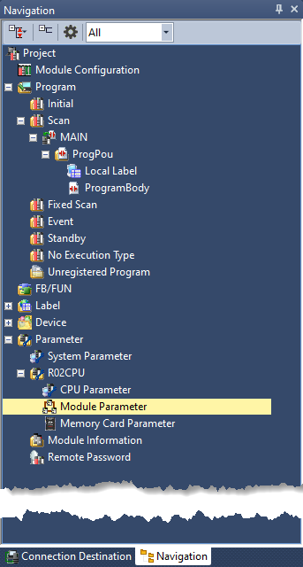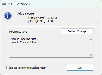 Select the PLC Series, Model (this tutorial use a iQ-R R02 CPU) and