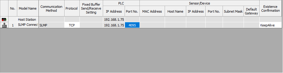 Set the Port No. to 4095 (default value for the MC protocol, use another if needed) for the SLMP Connection Module row: