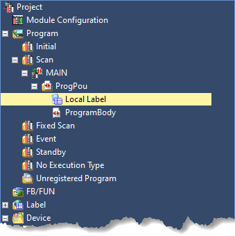 Once the project is created and configured, from the Navigation tree double click the Device Label: