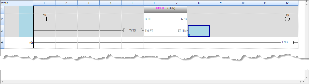 The timer will be added. Select row 2 and col 1 then press F5 and write X0 in the value field: