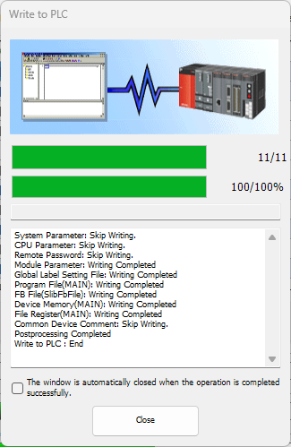 The select Online → Write to PLC... to open the download page: