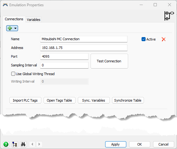 At first, we will create a Mitsubishi MC Connection to connect our model directly with the PLC.