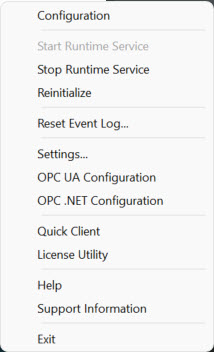From this menu select the "OPC UA Configuration" item.