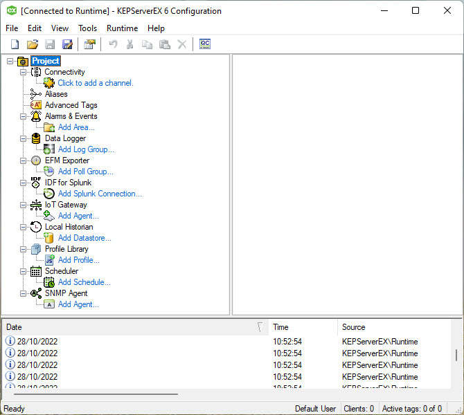 For this tutorial as OPC UA server we will use the KepwareServerEX 6, available from Kepware web site.