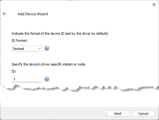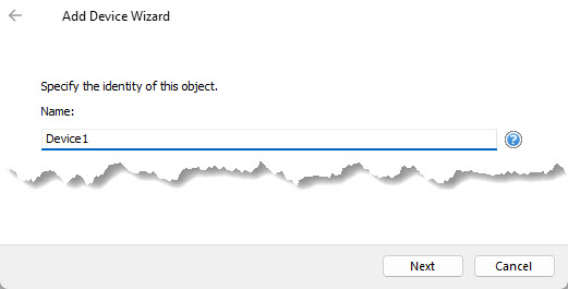 The "Device Wizard" will appear:enter a name for the device and press "Next"