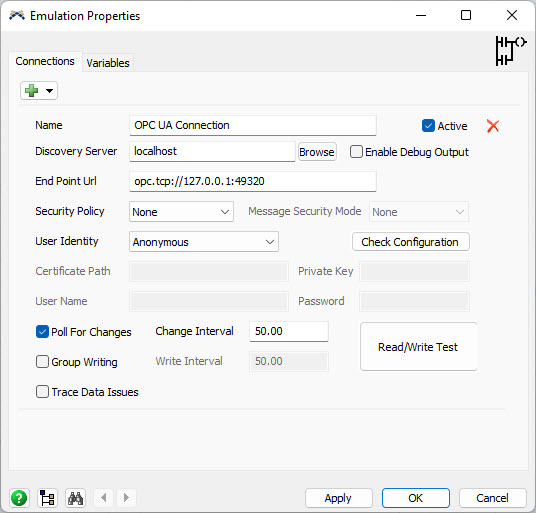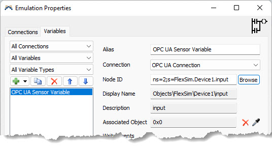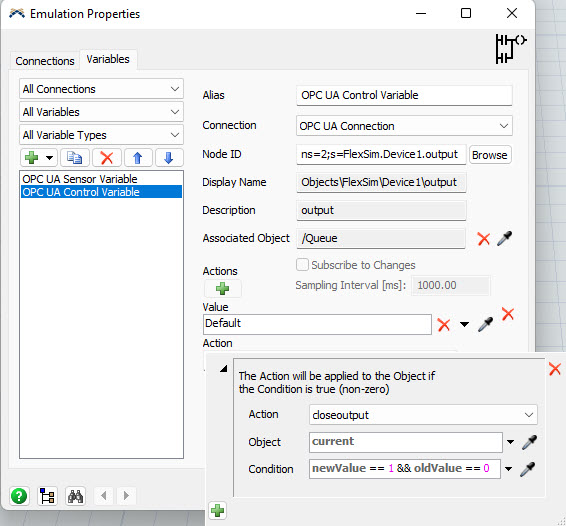 Emulation module makes FlexSim able to connect to OPC UA servers for data exchange.