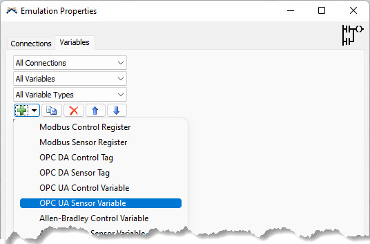 Click on the "Variables" tab and from the (+) sign select "OPC UA Sensor Variable".