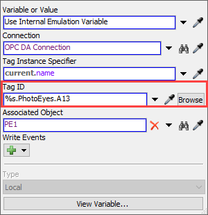 %sto dynamically reference the tag instance specifier. Add additional text to define the specific tag ID for the variable. For example,%s.PhotoEyes.A13orPhotoEyes.%sA13