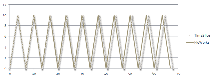 solution vs. time slicing. In this example, a 10 liter tank is filled and then emptied