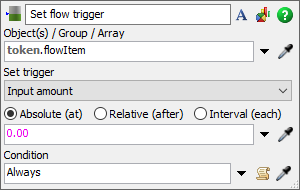 The flow trigger will be set on the exact input or output amount specified. If the cumulative flow of the object has already exceeded this amount, an error message will occur.