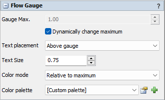 The flow gauge will dynamically change its color depending on the current flow rate relative to the maximum.