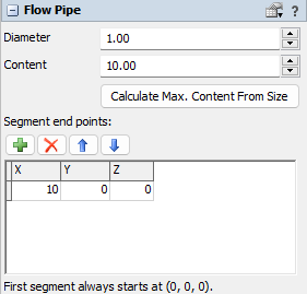 The value to be used as the content of this pipe, together with the outflow rate, to determine the time for products to travel from one end of the to the other. You can use the "Calculate Max. Content from Size" button to determine the content of the pipe automatically based on the current geometry of the pipe.