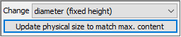 The z dimension of the object will be changed, the x and y sizes will be unchanged, such that the new physical volume (see Calculate Max. From Size) corresponds to the current Max. Content.