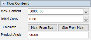 The Flow Content panel is shown for flow objects that can temporarily contain liquid or bulk material. Flow tanks, in all their forms including silos and flow piles, are perhaps the most obvious example, but the flow content panel is also applicable to flow mixers. On this documentation page, we will use flow tanks as an example but anywhere you read "(flow) tanks" you can substitute "content holding flow object".