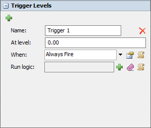 The Trigger Levels panel allows the modeller to trigger events when the content of a flow tank reaches a certain level, potentially under certain constraints (for example, reaching the level from above or only when going through the level as opposed to reaching it and staying stationary). On this documentation page, we will use flow tanks as an example but anywhere you read "(flow) tanks" you can substitute "content holding flow object".