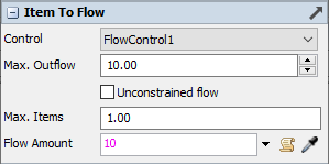 The Item To Flow panel is shown for item to flow objects.