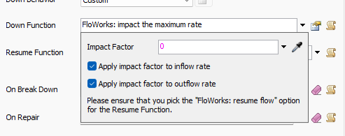 A value, statistical distribution or FlexScript function that determines the down time for the objects controlled by this impact event. This function determines how long they will stay impacted before resuming normal operations again. All of the controlled objects will go back to their original states at the same time.