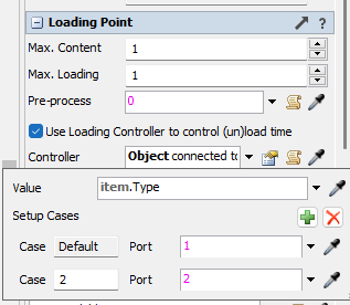 select the “Center Port By Case” option for the loading controller, and using item.Type
