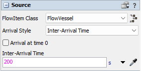 Set its FlowItem Class to FlowVessel, with an inter-arrival time of 200.