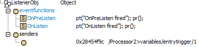 この場合、関数の実行直前にリスナーオブジェクトのOnPreListen関数が、直後にOnListen関数が実行されます。ただし、OnPreListenとOnListenで利用可能な変数は、次に示すようにまったく異なります。